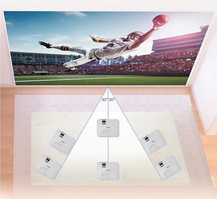 只需通過(guò)CB-S41機(jī)身上方的水平梯形校正按鈕,“一指”即可輕松搞定,“秒”間完成畫面調(diào)整,實(shí)現(xiàn)在±30°區(qū)域內(nèi)隨意擺放投影。