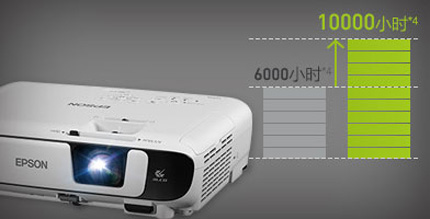 投影機(jī)的使用壽命是影響商務(wù)人士選擇的重要因素之一,愛(ài)普生CB-S41全新升級(jí),較之前代,燈泡壽命在普通模式下提高了1000小時(shí),達(dá)到6000小時(shí),