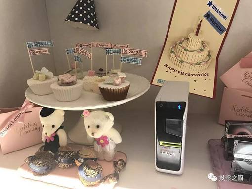 書架上擺放著帶小旗幟的蛋糕,這些小旗幟全部來自于Epson