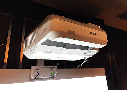 得益于先進互動技術,愛普生實現更先進的顯示方案——首先是雙屏互動方案,兩臺投影拼接創造適配黑板的寬幅畫面,雙屏手指互動功能創造更有吸引力的教學方式。另外,互動懸停顯示方案非常實用,讓不同身高的使用者可以輕松互動,讓學生們融入教學之中。