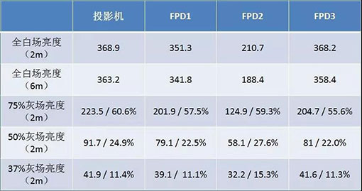 從亮度衰減及對比度的測試數據上看,如果教室選用投影機,后排同學不會因為距離遠帶來的亮度衰減而有觀看障礙,進而導致視覺疲勞和視力損傷。