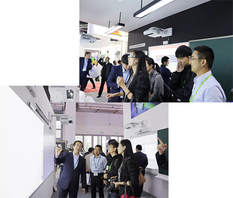此次愛普生K12智慧校園系列教育解決方案,展出了可用于多媒體教學使用的高清雙屏拼接互動教學解學方案、具有2048級還原書寫壓感的墻面/桌面集成投影解決方案,適用于低齡教學的超短焦懸停互動教學解決方案、同時滿足書寫投影需求的萬向板教學解決方案。