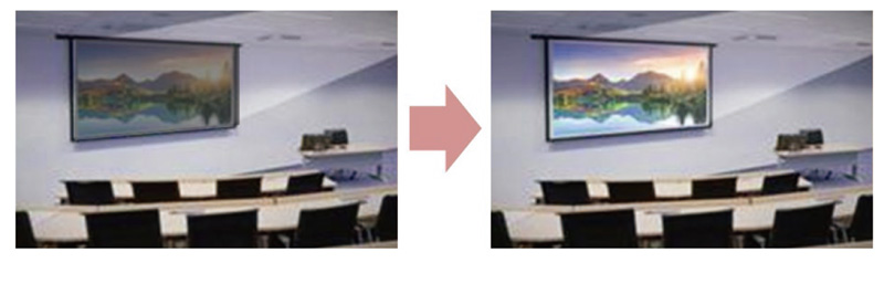 普通投影機隨著燈泡使用時間變長,畫面亮度和畫質會下降。而配備日立獨創的圖像優化功能,可根據燈泡的衰減情況進行圖像自動調整,