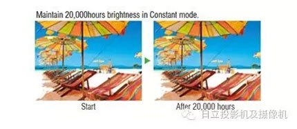 日立獨(dú)創(chuàng)技術(shù)彌補(bǔ)因長(zhǎng)時(shí)間工作后,光源亮度衰減帶來(lái)的畫(huà)面清晰度不足,保持圖像清晰。