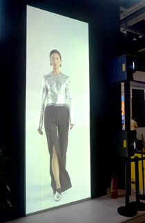 這一方案采用3臺(tái)業(yè)界最高亮度LED光源投影機(jī)HCP-L40WU,實(shí)現(xiàn)了一幅跨越墻角的寬屏虛擬窗。