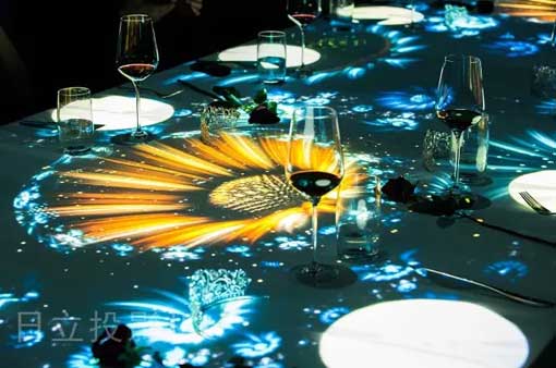 上海女王3D餐廳受到廣泛關注,試營業期間需要預約排位近半個月,如此火爆的原因,除了美食外,日立工程投影機功不可沒。