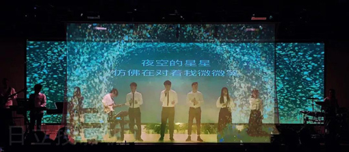 近日,日立投影機為某教會創造全息舞臺空間,兩臺日立10000流明高亮度激光工程投影機實現5.8米×3米巨幅紗幕影像,為敬拜會中唱詩、朗誦帶來美輪美奐的視覺效果。