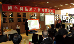 張樹江先生表示鴻合科技此次也攜帶了日立全系列投影機、四大系列電子白板(紅外、壓感、電磁、光學影像)、交互式書寫屏、視頻展臺等全線多媒體教學產品出席了此次普教展。希望在展會中將頂尖的交互技術和完備的教學解決方案完美的展現給廣大的參展者。在展示產品的同時,更表現了鴻合致力交互貼近教育的整體技術水平和綜合業務實力。