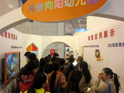 在本屆展會(huì)上,鴻合幼教展區(qū)顯得格外與眾不同,成為展會(huì)現(xiàn)場(chǎng)一道靚麗的風(fēng)景線。相比傳統(tǒng)展區(qū)僅僅陳列產(chǎn)品的單調(diào),鴻合科技將幼教展區(qū)搭建成為一個(gè)微型幼兒園——“鴻合向陽(yáng)幼兒園”,憑借明亮鮮艷的色彩和可愛(ài)的造型設(shè)計(jì),吸引大批觀眾駐足參觀。作為國(guó)內(nèi)唯一一家針對(duì)幼兒教育量身定做教學(xué)裝備的廠商,鴻合不僅帶來(lái)了廣受好評(píng)的幼教電子白板,還帶來(lái)了更為先進(jìn)的55寸幼教專用交互平板,在幼教教裝領(lǐng)域形成了“交互平板+電子白板”的完整產(chǎn)品布局,截止目前國(guó)內(nèi)僅此一家,充分體現(xiàn)出鴻合在幼教領(lǐng)域的前瞻性。