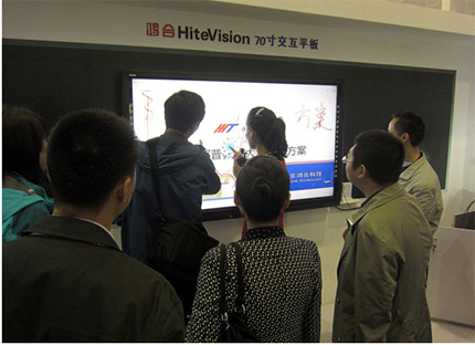 與之相對應的,是紅外式電子白板的快速普及。使用紅外式電子白板非常方便,只要是不透明的材質,如手指和教鞭,都可以在白板上書寫和繪畫,徹底杜絕了專用筆損壞帶來的損耗;同時,六點以上的多點觸控能力,鴻合i-AIST技術甚至可以達到10點觸控,可以讓老師和多名學生在課堂上同時書寫,使得課堂教學方式更加多樣化,趣味性大大增強。