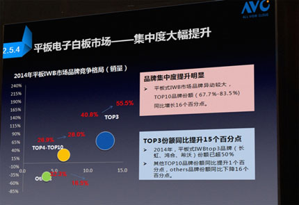 2014年平板IWB市場品牌競爭格局(長虹、鴻合、希沃3家份額已超50%)