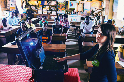 聯合國兒童基金會(UNICEF)員工演示鴻合“移動多媒體教室(Mobi-Station)” |