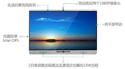 one”的產(chǎn)品理念,將顯示、擴(kuò)音、拾音、攝像、遠(yuǎn)程交互、書寫和觸控等,整合到一臺(tái)機(jī)器中,例如整合了先進(jìn)的麥克風(fēng)陣列、前端加入了1080P的高清攝像頭,同時(shí)還有2個(gè)前朝向的高保真音箱真實(shí)還原語(yǔ)音效果,并內(nèi)置標(biāo)準(zhǔn)的Intel