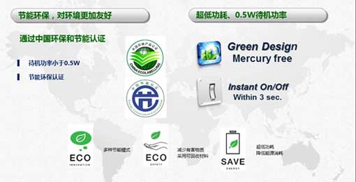 全內置一體化設計也為該系列產品帶來了前所未有的擴展能力,它能輕松連接各種智能外設,甚至通過無線網絡用電腦、手機等進行操控與播放。其接口包括HDMI、VGA、AV復合視頻接口、S端子、USB接口、RJ-45網口等。