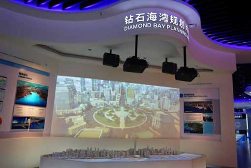大連市規劃館全景展示大連百年歷史變遷,呈現當代建設成果,展望未來發展愿景。這里應用了總計超過30臺NEC工程投影機,其中,5臺14000流明3DLP機型PH1400U+打造了震撼的城市3D展廳,凸顯“城市之光”;PX651X+與PX581W+等機型打造了影像長廊、交通沙盤、互動地投、虛擬港口等豐富方案,讓這里成為亮麗卓絕的“城市名片”。