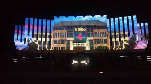 創意影像不應局限于小空間,通過投影技術,可以擴大空間釋放更震撼的表現力;建筑外墻投影Mapping是一項應用越來越廣泛的方案。鴻合與NEC為吉林市北方米業博物館打造的