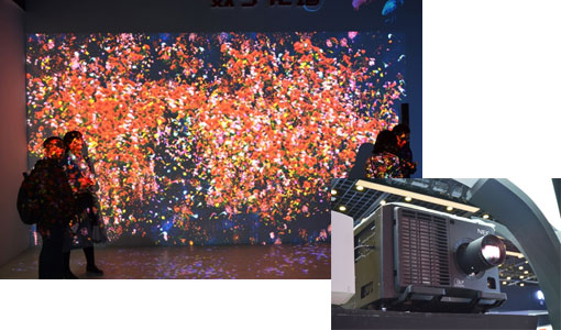 本次展會中,NEC工程投影機打造精彩創意方案,最醒目的當屬數字花墻,其墻面主畫面由NEC旗艦工程投影機NP-PH3501QL+呈現,4K