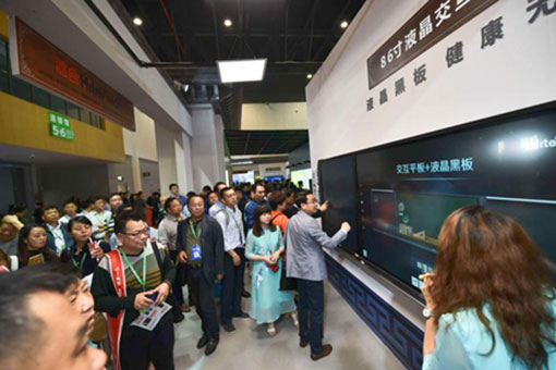 在琳瑯滿目的展品中,鴻合科技最新研發的高科技黑板吸引了眾多參觀者的目光。鴻合科技股份有限公司高級副總裁龍旭東在記者采訪中表示:“這是我們全球第一款推出的采用全貼合技術的智能交互黑板,適應了現代化多媒體的教學,同時又兼顧了傳統的粉筆書寫,能夠大幅提升我們的教學效率,提升學生的學習興趣。”
