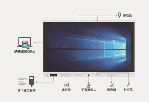 內涵豐富、配置強大是鴻合商用交互平板V系列的核心優(yōu)勢,它集聚多種專業(yè)硬件于一體化機身中,4K高畫質廣視角屏幕、雙麥克風、雙揚聲器、觸控筆、豐富接口等,值得注意的是,它配備了超高清攝像頭,大幅提升遠程會議影像效果,清晰影像讓天涯咫尺成為現實。
