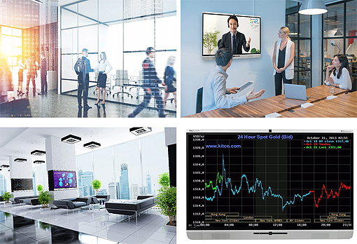 在銷售中心或營業廳,Newline商用平板動態顯示每日金價,客戶可點擊大屏查閱信息,了解金融產品詳情,快捷獲取資料。