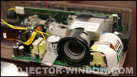 機(jī)身上還有一個面板是為方便更換投影機(jī)燈泡而設(shè)計的,打開小蓋兒,可以輕松更換燈泡,而無需將略顯笨重的投影機(jī)拆卸下來。IN42的燈泡散熱同樣采用了S型風(fēng)路設(shè)計。