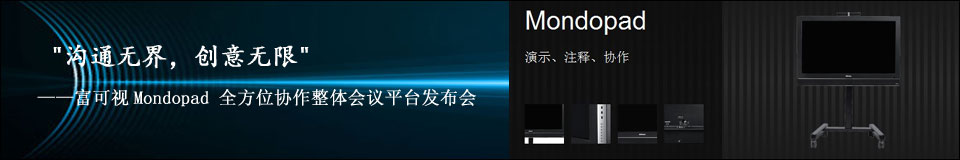 富可視Mondopad是基于Windows架構的多媒體溝通平臺,集顯示,標注互動,遠程會議與一體的“全參與,全互動”的統一協作系統,內容包括遠程視頻會議系統、全兼容的協作平臺、投影機、電子白板、音箱、高清攝像頭、正版windows7專業版系統、正版全功能office