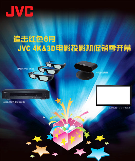 JVC 4K&3D電影投影機促銷季火瀑開幕。4K元年,JVC攜最超值4K電影投影機及全陣容明星產品開啟6月促銷大幕。即刻體驗4倍1080p影像及好萊塢級2D/3D轉換技術。
