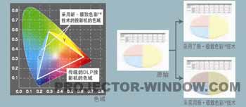 5段(RGBWY)色輪與6段(RGBWYC)色輪顯示效果對比 |