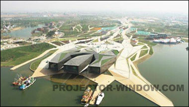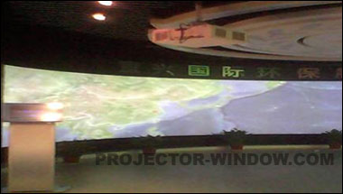 該套環形大屏幕主要用于宜興國際環保展示廳入口大廳處的主屏展示。該項目使用4臺三菱投影GX-8100以正投融合拼接的方式實現顯示。