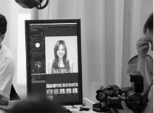 攝影師喬勇從布燈、燈光和拍攝角度等拍攝的各方面技巧面面俱到的給攝友做講解,旁邊助手一步步的操作配合,使攝友清晰了解了整個過程,紛紛表示很有收獲。攝影師喬勇現場試拍模特,并隨即通過三菱專業圖形顯示器觀看畫面和做深度解析。喬勇告訴大家,前期拍攝的作品最終都需要在顯示器上完成修片和校準。所以擁有一臺專業的顯示器尤為重要。 |