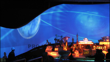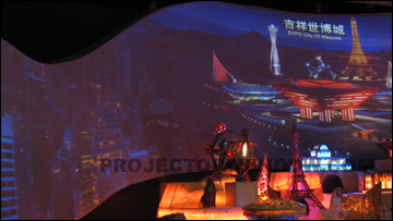 為了給觀眾營造一個奇幻的展示環(huán)境,為了更加形象的展示世博150余年的發(fā)展歷程,世博會博物館中大量的應(yīng)用了環(huán)幕、飄幕和天幕,這些外形不規(guī)則投影幕的使用會給世博會博物館的布展造成麻煩嗎?