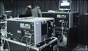 優(yōu)質(zhì)的解決方案和穩(wěn)定可靠的產(chǎn)品贏得了用戶的一致好評。此次為迎接媒體來訪,NEC又特地準(zhǔn)備了2011年新品工程投影機(jī)解決方案:2臺(tái)PA600X+智能邊緣融合解決方案、2臺(tái)PX750U+智能疊加及雙色輪對比解決方案、單臺(tái)PX700W+幾何校正解決方案、PH1000U+投影機(jī)OPS接口插板無電腦化播放解決方案,