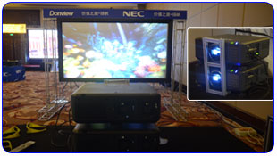 采用11000的流明的NEC PH1000U+投影機,組建高清影院系統。3DLP技術、符合DCI規范的影院級鏡頭、高級疊加構造、打造出完美的色彩還原。高保真的視覺效果。