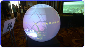 內投球投影,通過點擊熱區實現當地水電站照片的觀看。球面投影,直徑80cm。