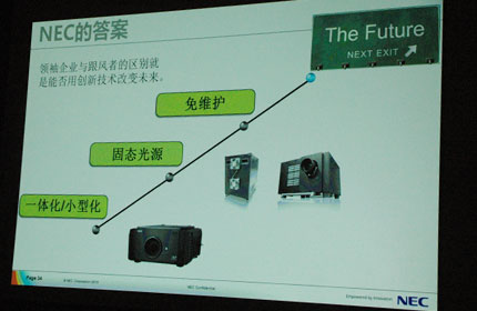 會(huì)上,NEC發(fā)布了新型一體化數(shù)字電影機(jī)NC900C。NEC(中國(guó))顯示產(chǎn)品產(chǎn)品總監(jiān)崔永新介紹說(shuō),