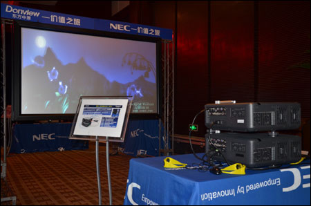 據(jù)現(xiàn)場(chǎng)專業(yè)人員介紹,NEC雙機(jī)一體化被動(dòng)立體技術(shù)十分成熟,NEC獨(dú)有的OPS系統(tǒng)和獨(dú)特的疊加構(gòu)造讓被動(dòng)立體方案搭建更快捷、操作更簡(jiǎn)單,并且信號(hào)傳輸距離極短,系統(tǒng)穩(wěn)定性高,適用于虛擬仿真、立體展示等行業(yè)應(yīng)用。會(huì)場(chǎng)中的內(nèi)球投影、增強(qiáng)現(xiàn)實(shí)、小型劇場(chǎng)等方案也引起了與會(huì)者的濃厚興趣。