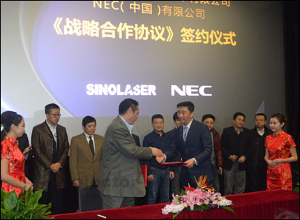 雙方共同簽署的戰略合作協議,是在平等互利、優勢互補的原則下互相信任的結果,也是友好合作的開端,這將是雙方發展史上的一個值得紀念的里程碑,它實現了SINOLASER與NEC在激光顯示產業領域內的技術互補、強強聯合,標志著中視迪威與NEC在高亮度激光顯示技術應用與商務合作上邁出了堅實和重要的一步。