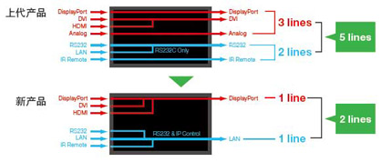 P系列產品獨有的雙卡槽結構設計;第二代OPS卡槽和視頻擴展卡槽提供了更寬廣的解決方案。信號切換速度性能增強,為用戶提供了從正常到超級三種信號切換模式,而超級模式下視頻輸入切換更是達到眨眼之間。此次推出的四款產品代均采用了NEC特有的菊花鏈設計,有效減少了信號在傳輸過程中的衰減視頻信號可通過一根DisplayPort環出;控制信號通過一根網線環出;最大可支持100臺顯示器的菊花鏈設計,有助于減少連接線纜和人力成本。