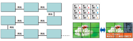 該系列拼接支持顯示器的遙控串聯(lián)功能,通過NEC的有限遙控輸入輸出接口,將顯示器用遙控線鏈接起來,可以每臺顯示機器自動分配ID號碼設置,最大支持100臺,既可以實現(xiàn)所有顯示器的共同遙控,又可以由遙控器對單獨的顯示器進行控制和調整。