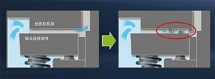 電動鏡頭位移,無需移動投影機就能調整投影畫面在水平和垂直方向位置。同時,鏡頭中置設計便于圖像梯形校正。梯形校正可以由遙控器進行控制,投影機無需安裝到人觸手可及的位置。 |