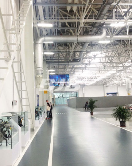 為了不影響正常日間生產(chǎn),安裝施工都在晚上進行。顯示器需要吊裝在生產(chǎn)車間的橫梁上,離地高度大,同輝佳視的技術工程師只能借助大型升降裝備進行作業(yè),克服了種種困難,加班加點如期完成施工。