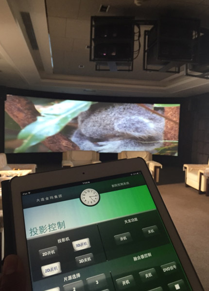 PX581W+投影機有著6000流明高亮度、720P高清分辨率,進行弧形融合后可以全角度、全方位的為來賓展示企業文化、產品、服務等視頻資料,大大提升客戶觀看體驗。考慮到影音室面積、燈光等實際因素,該項目沒有簡單的采用3臺融合的方式,而是6臺投影機先進行兩兩疊加,再進行弧形融合,保證了畫面超過10000流明的充沛顯示亮度,用兼顧性價比和效果的方式充分滿足了客戶的需求,為客戶打造超高清晰度畫面投影效果。