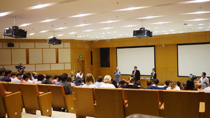 PH1000U+投影機同樣具備11000流明高亮度和1920×1200分辨率,三臺高清、高亮投影機的組合使用,能夠有效抵抗報告廳中環境光的干擾,為全院師生提供優質的顯示服務。