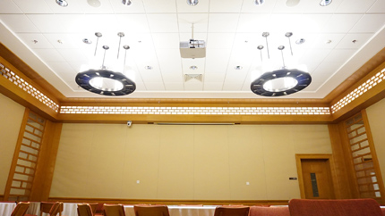 在書院的兩個中型宴會廳中,同樣采用了4臺來自NEC的PA551U+液晶工程投影機。其高亮度、高畫質、低功耗、高可靠性、靈活安裝等豐富的系統功能為學校打消了因長時間使用可能帶來的亮度降低等不穩定因素的顧慮,而清晰明亮的畫面和更加持久的絢麗圖像效果更確保在不同高規格場合的完美應用。