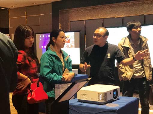 現場,最吸引嘉賓眼球的當屬互動融合解決方案,該解決方案配備的是2臺CF6500X系列5500流明的的標清液晶投影機,它支持大范圍光學變焦與鏡頭位移,能呈現超高色彩和亮度。此外它還具備紅外激光傳感器,支持多點識別,安裝位置靈活,操作簡易,完全滿足舞臺演出的場景需要。這一方案的展示,引起參會嘉賓的熱烈關注。