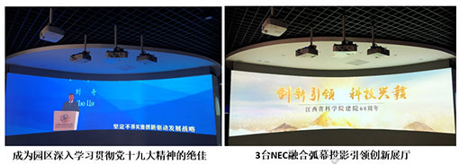 商務投影融合弧幕投影應用方案見證了江西省科學院為發展成為國家級重點科學中心和創新高地的不懈努力。展示中心所采用的NEC