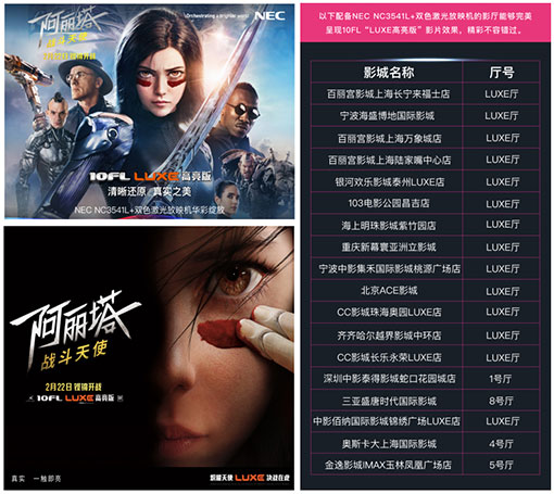 * NEC激光放映機呈現10FL高亮版《阿麗塔•戰斗天使》