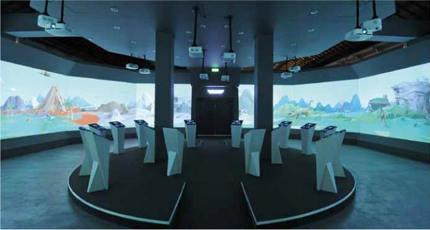X605;而最引人關(guān)注的360º環(huán)型投影區(qū)域則應(yīng)用了12臺(tái)Optoma W505 投影機(jī)。