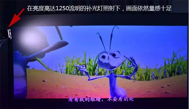 100系統在環境光下的畫面表現,應用亮度高達1250流明的攝影補光燈,奧圖碼的這套影院系統除了緊挨著燈光直射的部分,整體畫面仍然色彩鮮艷、層面豐富、量感十足。實際上,LCT