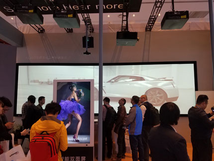在奧圖碼現場展區,首先最引人注目的便是在高流明度展示區中,應用奧圖碼12000流明級專業激光投影設備拼接的7.2米×2米巨大畫面。作為在大型場景中使用的投影解決方案,奧圖碼通過頂尖激光產品,呈現色彩細膩逼真的高亮顯示畫面,帶來了震撼高清的視覺觀感。